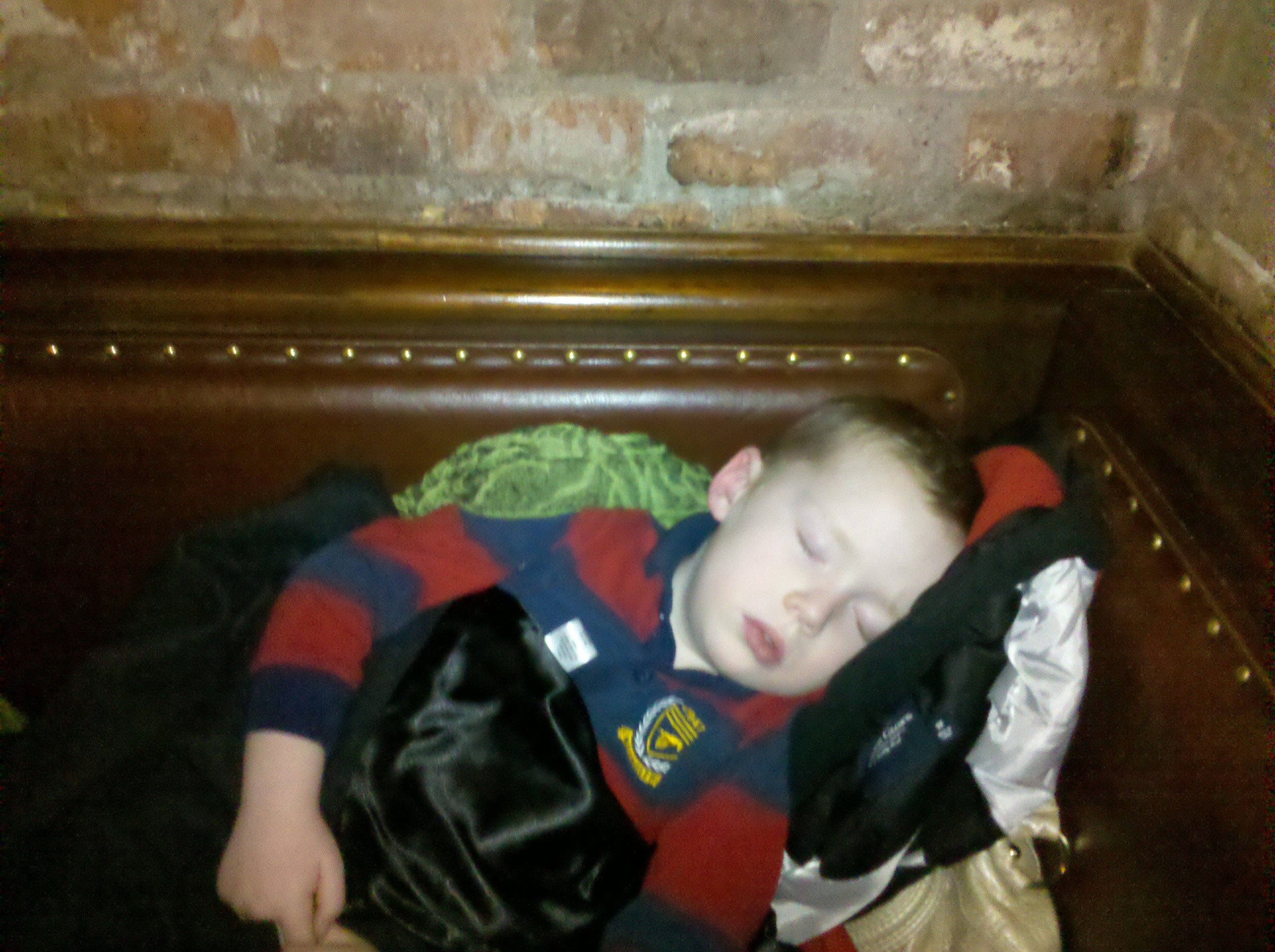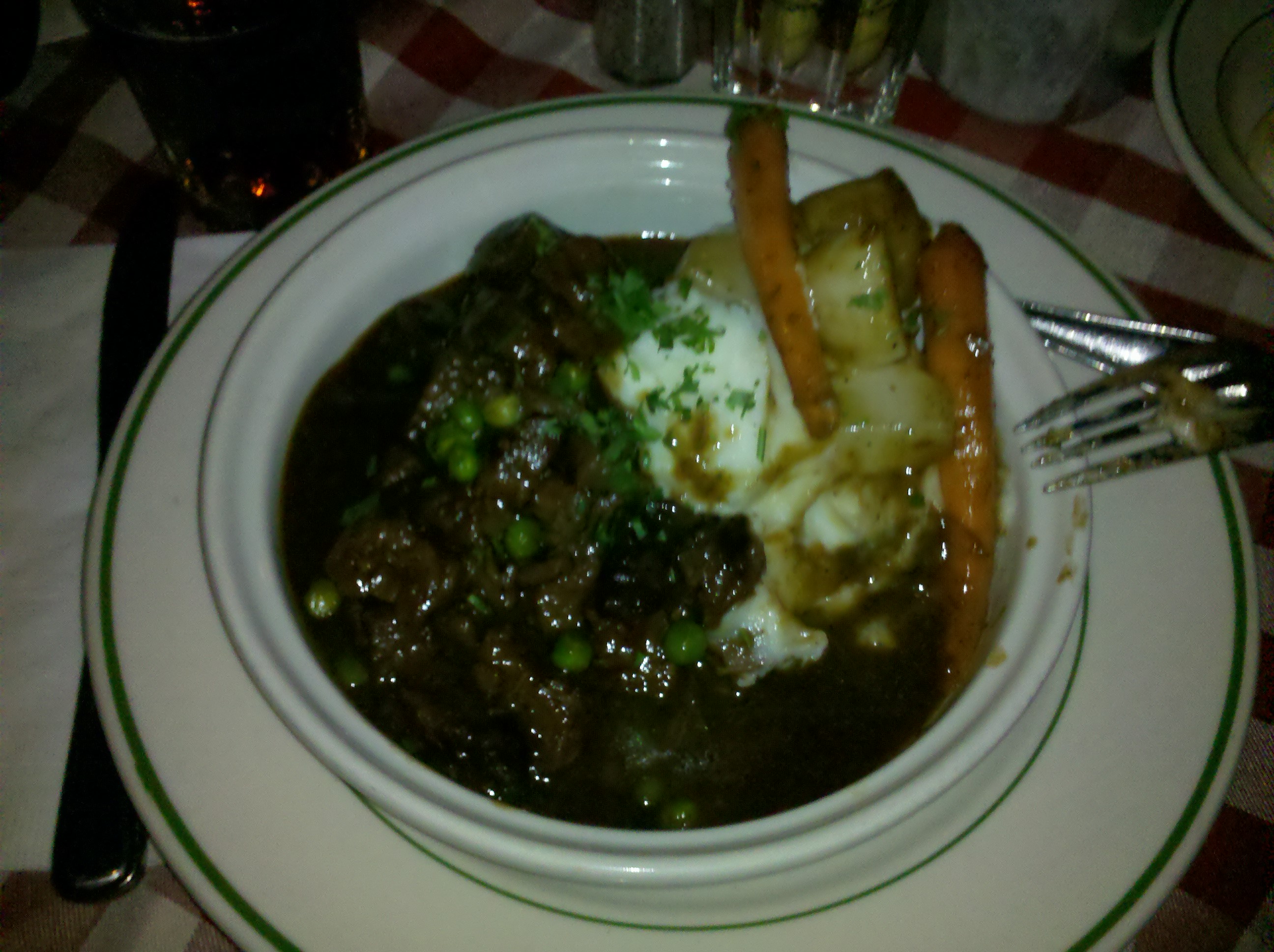 Our first meal in NYC was at the world famous P.J. Clarke’s (which I keep confusing with PJ O’Rourke, who is not a restaurant at all. Sorry, P.J.) where I had Irish Stew that was so good I wanted to just get inside it and roll around. I ate every scrap in my bowl. Amy had a Shepherd’s Pie that was also very tasty. Thor ordered a cheeseburger and started in on it, but then something happened. Almost mid-bite, he fell asleep. This became a running theme. Thor fell asleep at every restaurant we visited.
