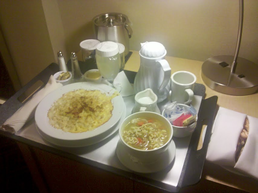 So I was happy with the room service, and happy with the waiter who brought my tray. I was a little unhappy that the maid service left the open creamer jug on my dresser for three days. I was afraid to sit that in the hallway because of foot traffic, but maybe I should have gone ahead and done that? Christina will have to let me know.