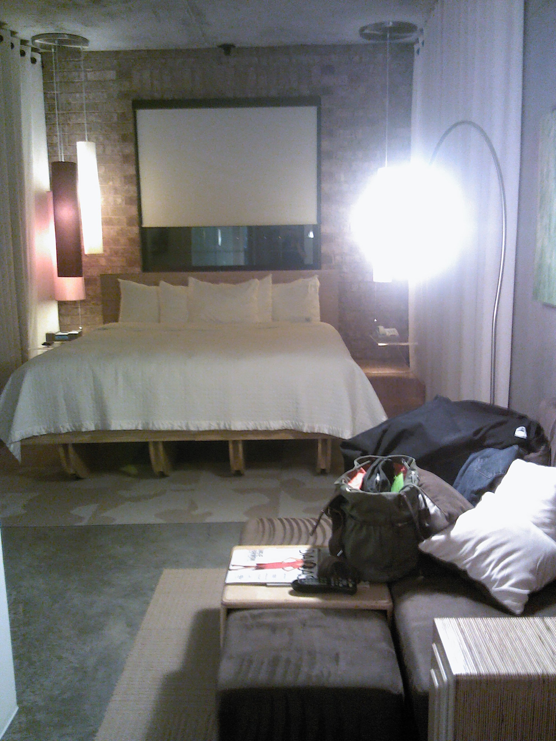 After dinner, we drove over to the nearby NYLO hotel for the night.  The NYLO wants to be in Manhattan, and I thought it did a really good job of bringing that industrial, hipster-loft feel to the bustling yuppie-land of Plano.  Our room overlooked one of the frou frou strip malls on Preston, so not exactly the Meatpacking District, but still fun.