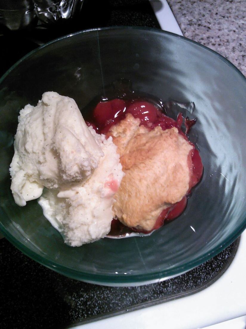 The boys like Italian sausage for dinner, but I can’t stand the stuff, so while I was cooking for them, I whipped up a little something different for me. For them, I made sweet Italian sausage with angel hair pasta and marinara sauce. For me, I cooked up some turkey bacon (3 strips), extra crispy, scrambled 1/4 cup of egg beaters with salt, pepper, and a TBS of shredded cheese, crumbled my bacon into my eggs and mixed that into 1 cup of the angel hair and marinara. It was tasty! And rather filling. And bacon. (And, if you’re counting–like P, who asked for it–this is 10 PPV. There you go, P!)